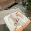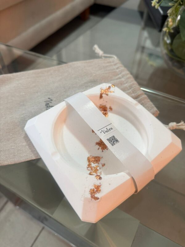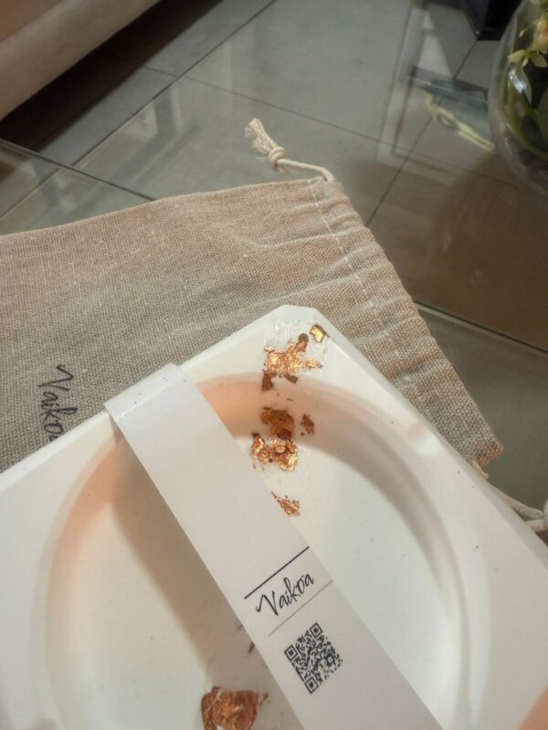 Pieza elaborada a mano lo que hace que sea una pieza única, fabricada con productos 100% ecológicos, detalles de aplicación pan de oro color cobre.