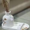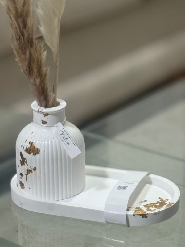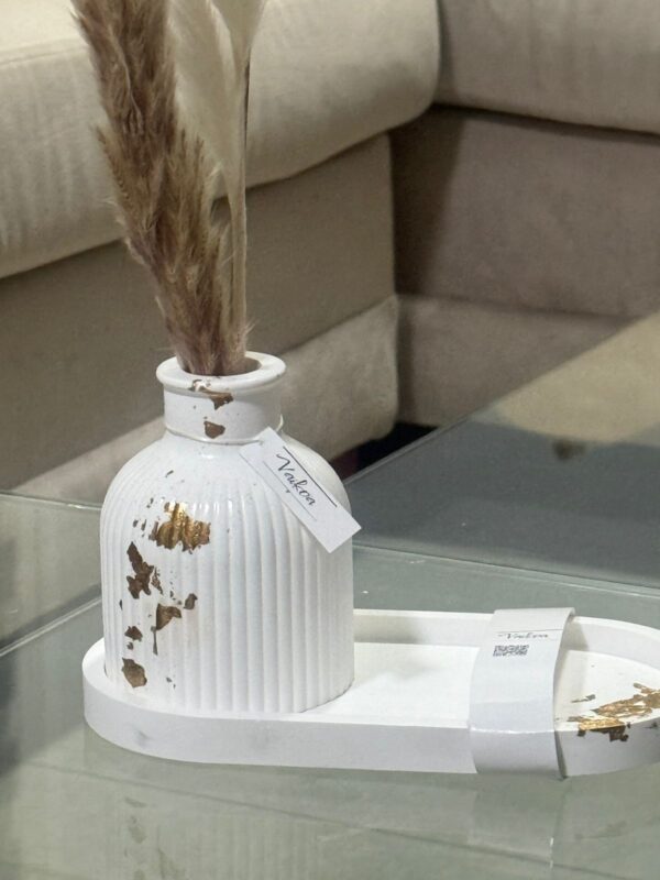 Florero Vai – con detalles que lo hacen único, piezas elaboradas a mano 100%, con bandeja pequeña 18×10 cms