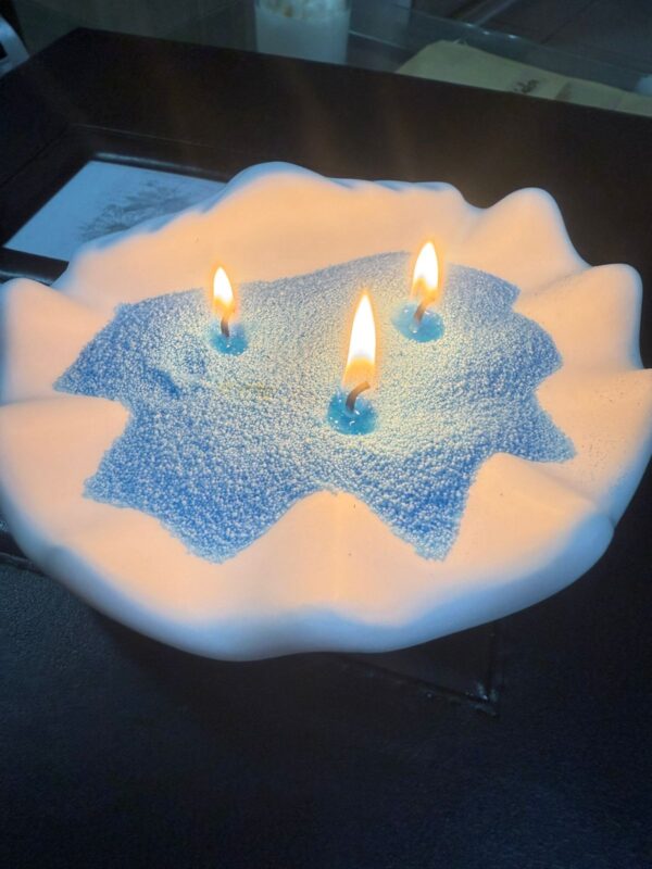 Nuestra Vela Marina en formato para añadir Cera Perlada Vegetal Azul (100 grs) junto a 20 mechas para su uso.